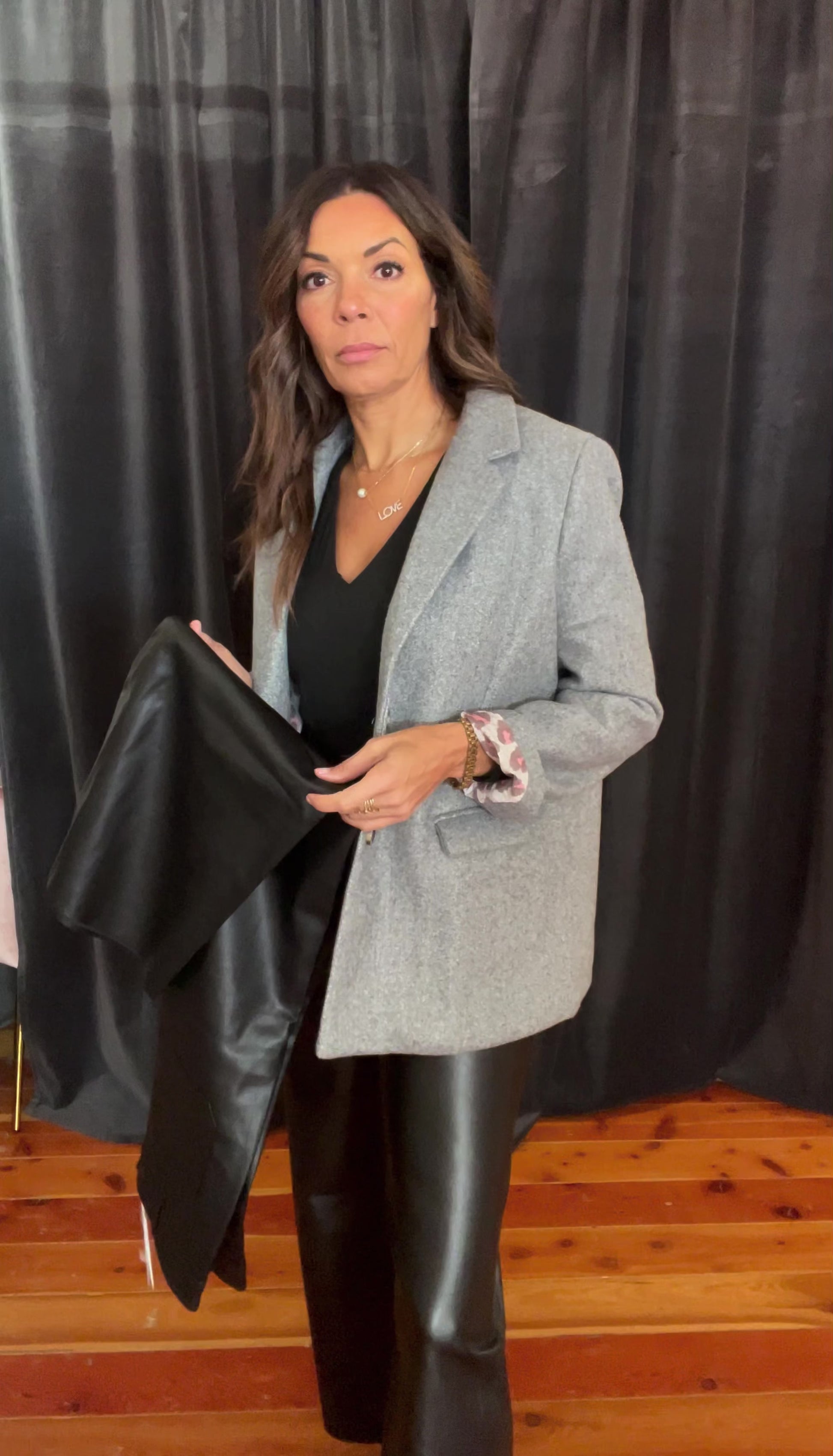 BLACK PALAZZO-STYLE FAUX LEATHER PANTS