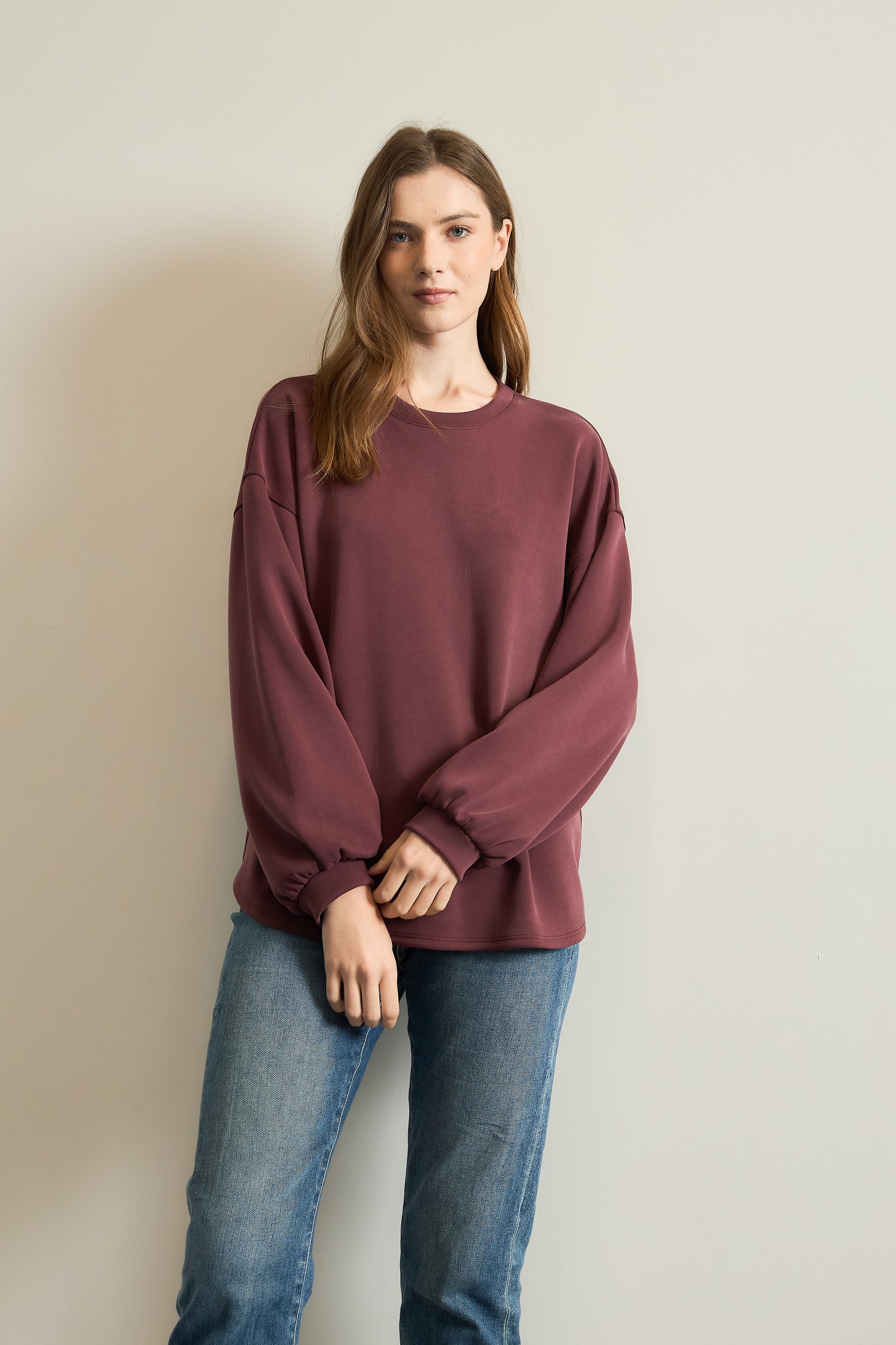 Cupro Maroon Loose Fit Top
