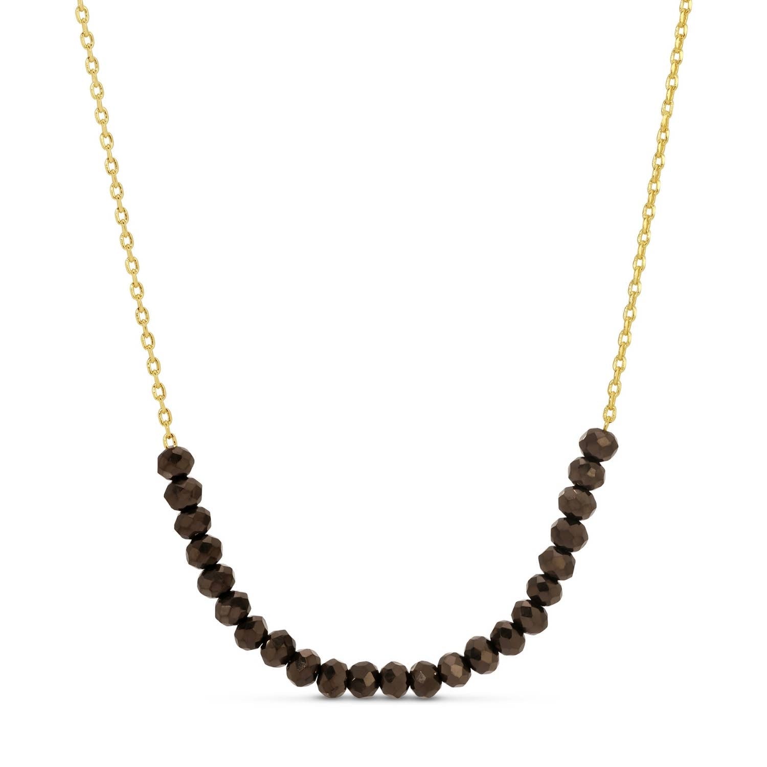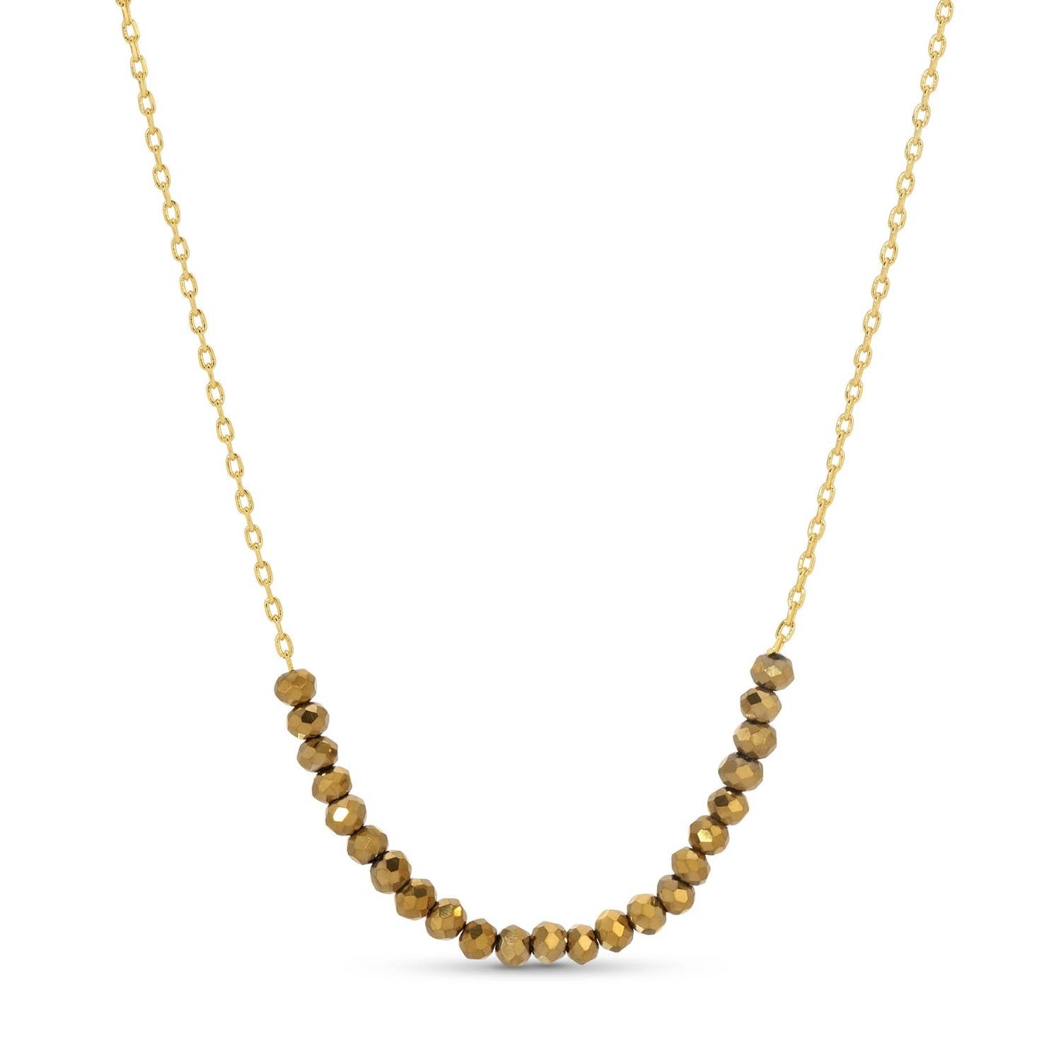 Enhance your look with this minimalist necklace featuring a row of elegantly appointed glass crystals. Its versatility allows for it to be worn alone to exude a sophisticated air, or layer it to add a touch of fashion-forward color. 16" Necklace 18k Gold Plated Brass Base Glass Crystals Packaging: 'Quick-Display' Necklace Card