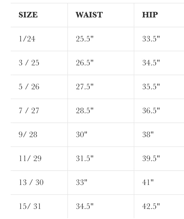 - 11" Rise / 28.5" Inseam (Size 5/26)