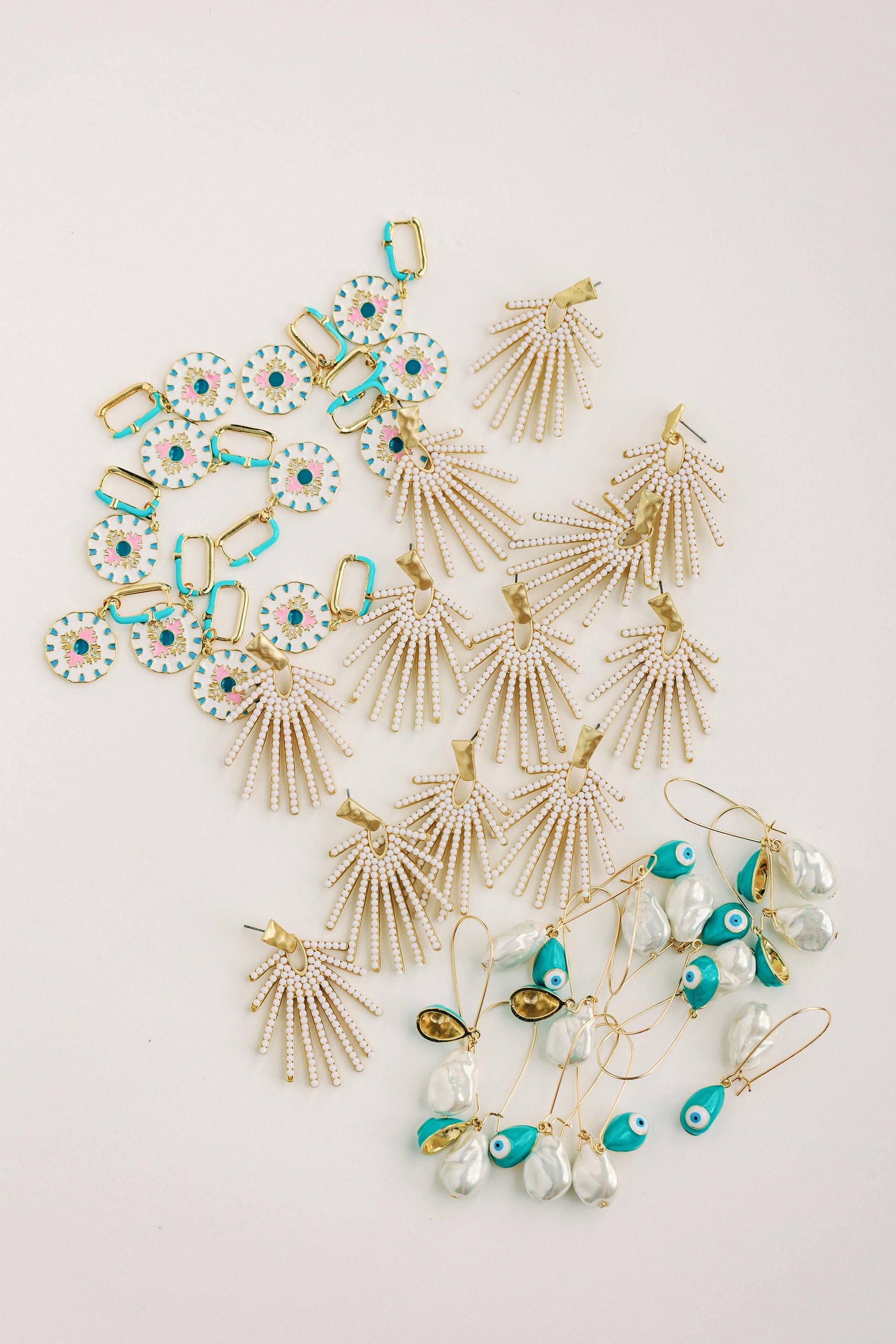 Natural Pearl and Evil Eye Threader Statement Earrings
