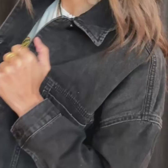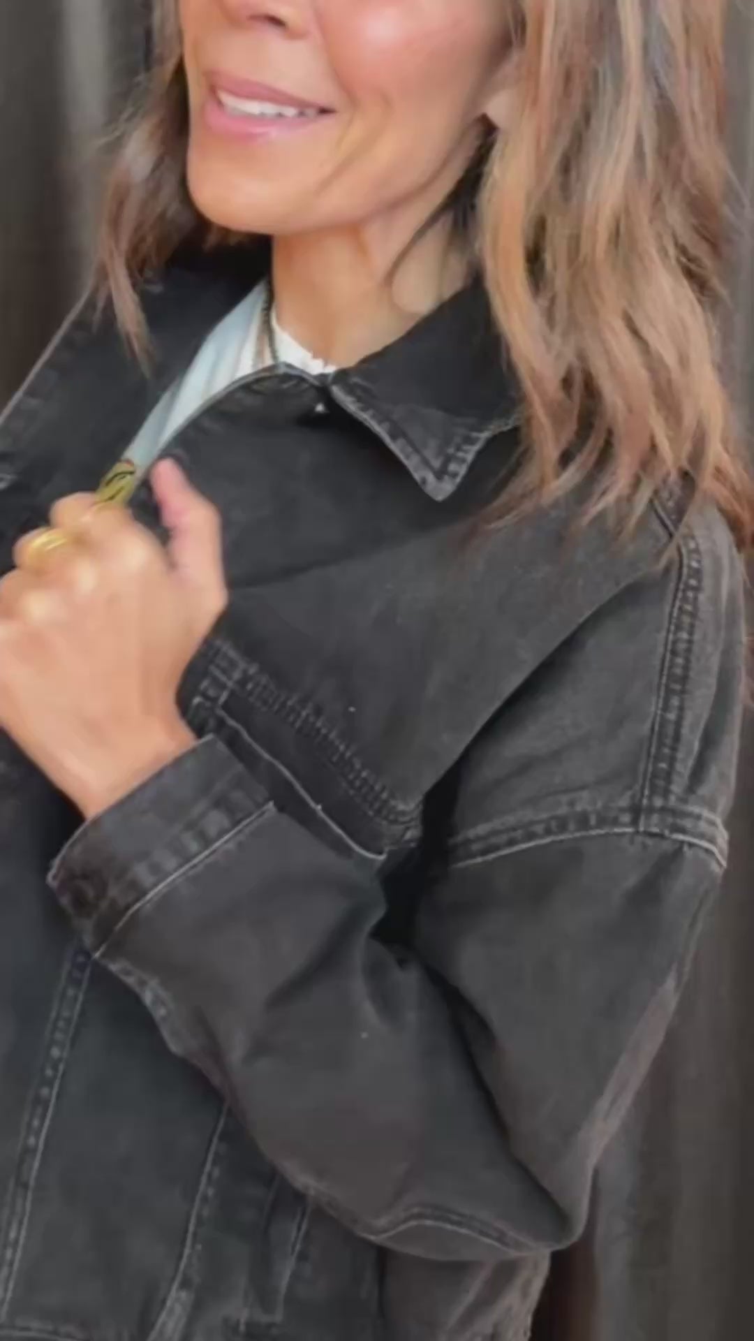 Washed Black - Oversized Utility Pocket Denim Jacket