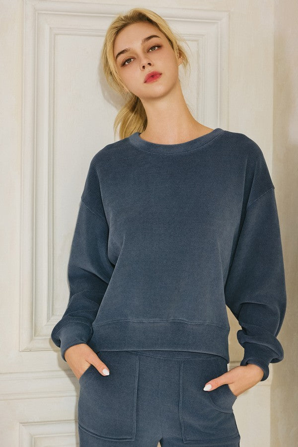 Relaxed Ribbed Corduroy Long Sleeve Top