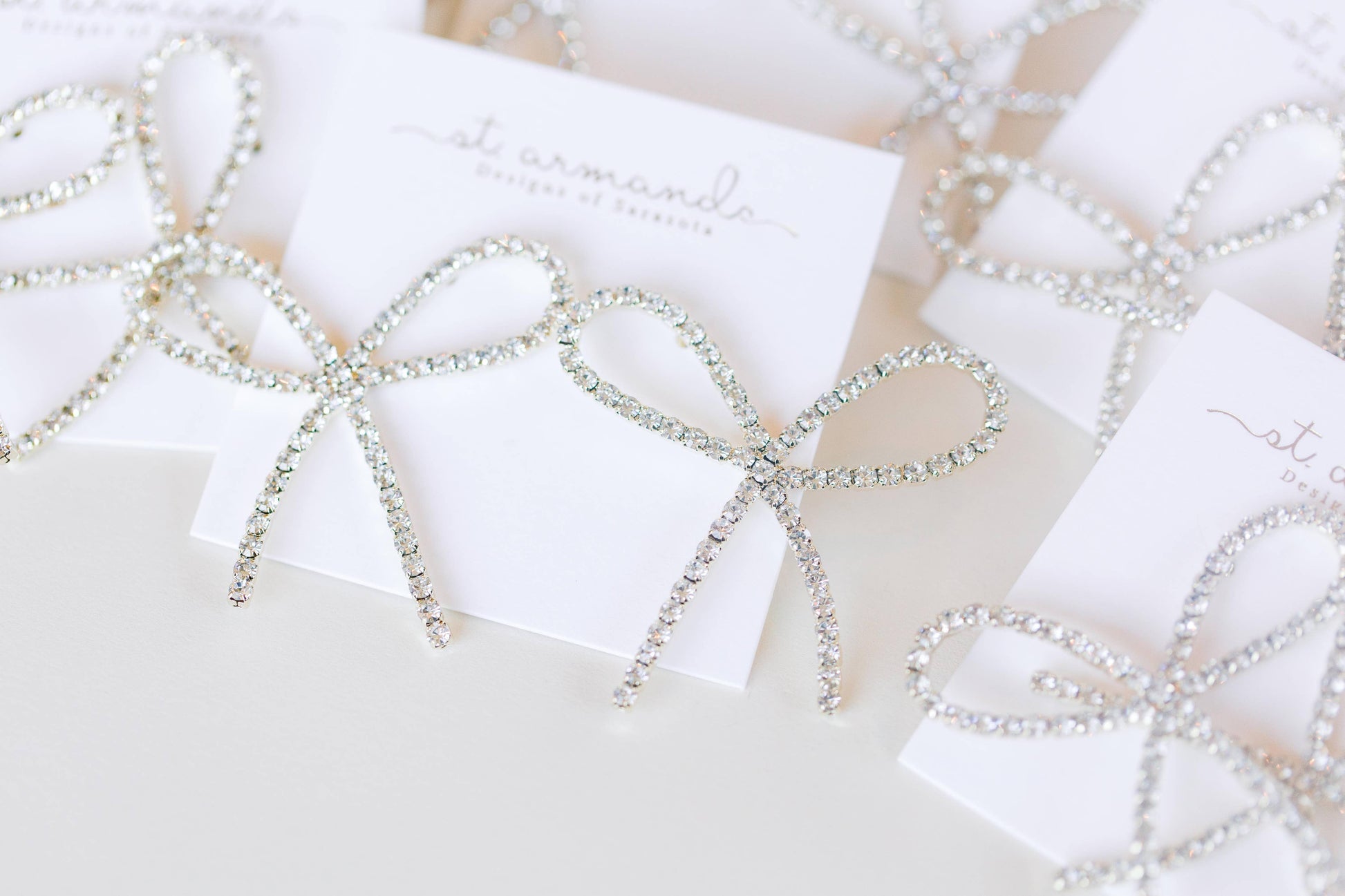 Super festive, yet elegant - Our rhinestone bow statement earrings are perfect for Christmas, Holiday and New Years! They are perfect for a little black dress or a comfy sweater!