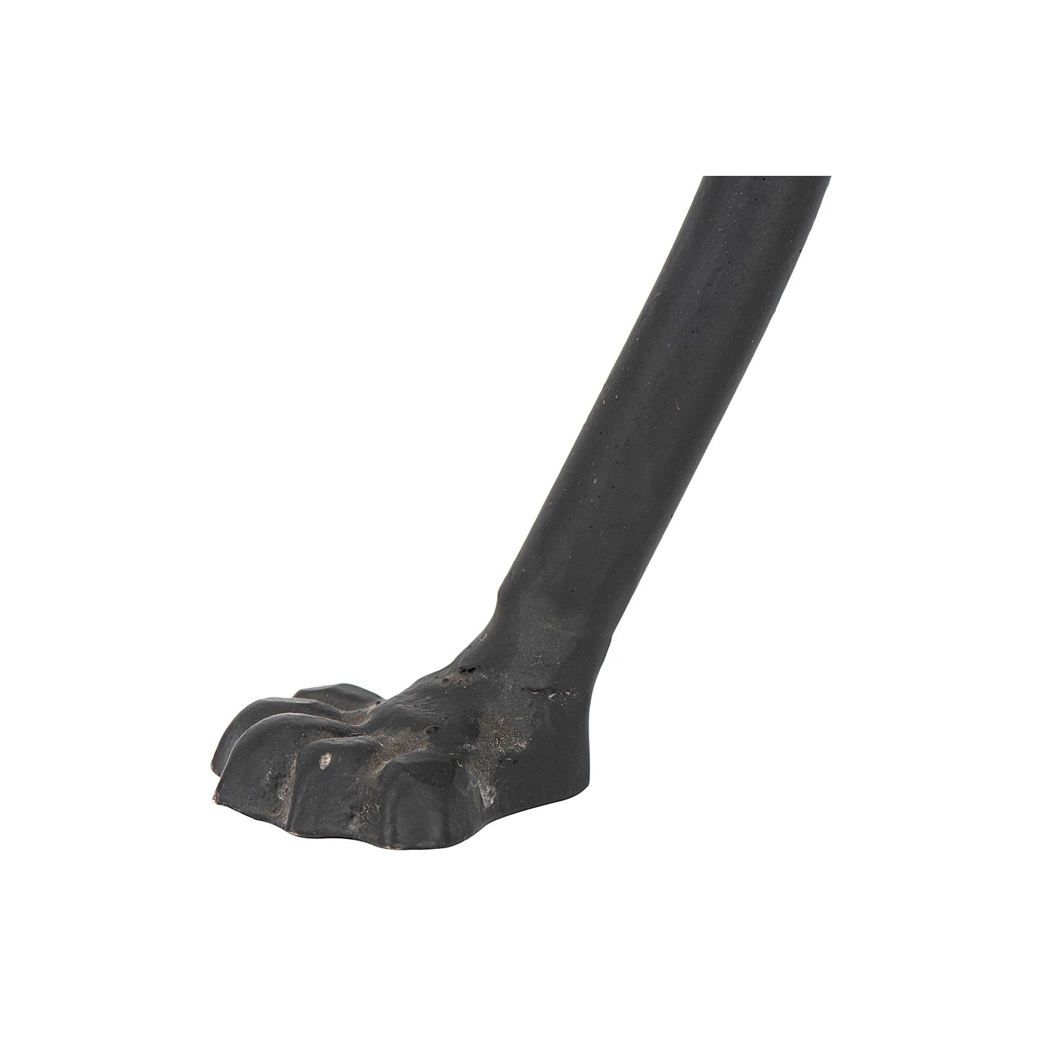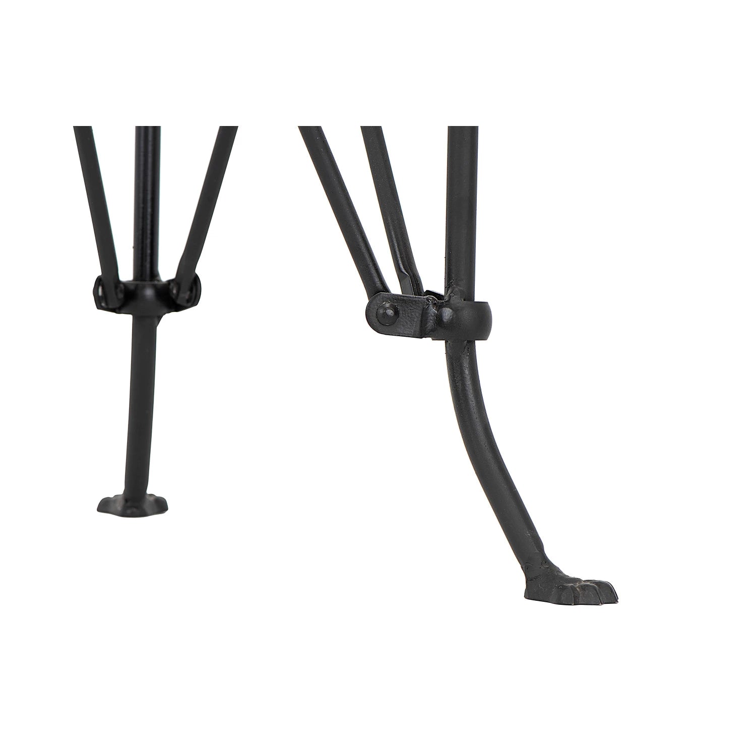 This vintage-style metal side table features a sleek black finish, elegant claw feet, and a raised lip to keep items in place. Crafted from sturdy iron with cross-brace support, it offers both charm and durability. Measuring 15.75" in diameter and 25.75" high, it’s perfect for small spaces and pairs well with farmhouse or cottagecore décor.
