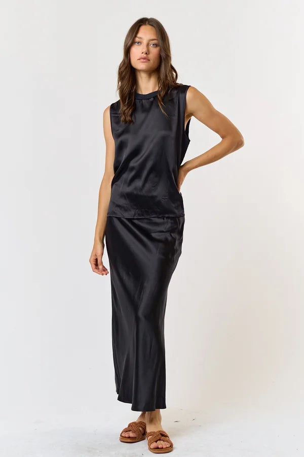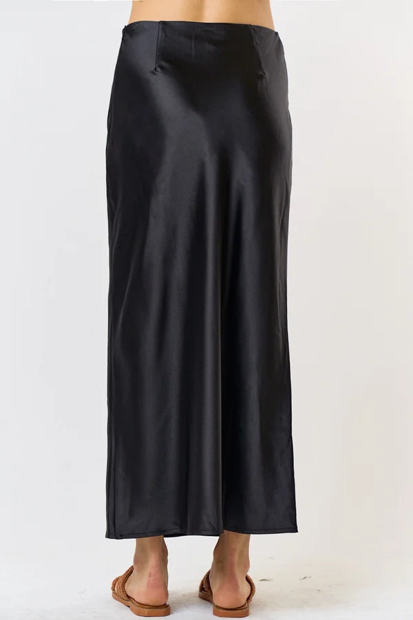 Everyone needs a black skirt in their closet and this is THE ONE! Satin like material and the perfect lengh with a tad bit of flare. You can wear this with your favorite sweater or dress it up for your holiday parties.