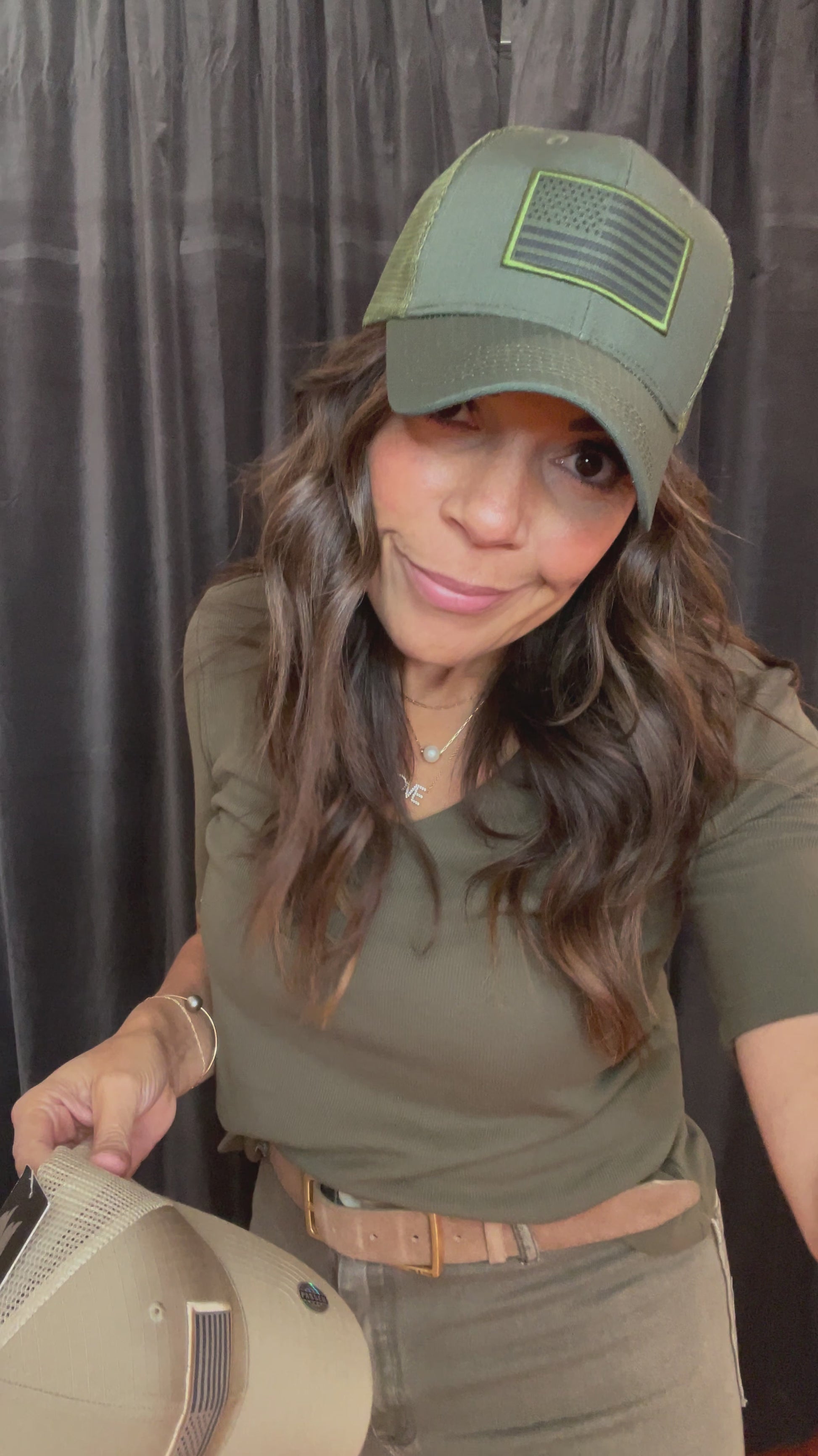 Solid American Flag Patch Cotton Polyester Blend Ripstop Fabric Six Panel Curved Bill Breathable Mesh Snap Back Trucker Hat