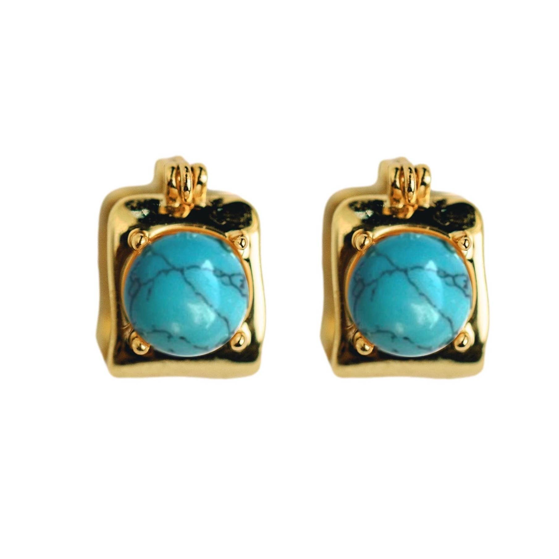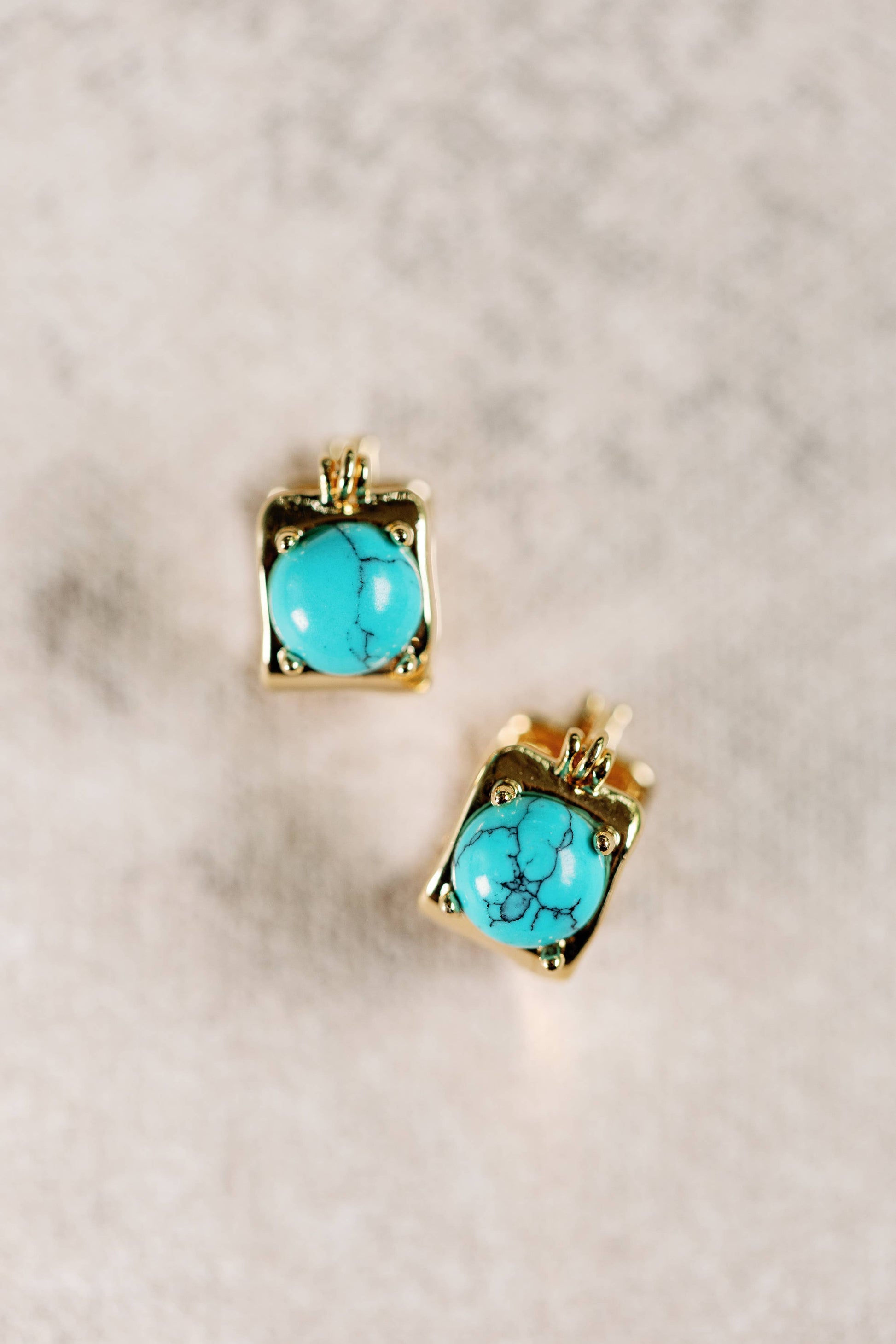 Vintage Style gold tones are one of this year's biggest trends, and we are excited to add a turquoise version of our top-selling square mini pearls to the collection! The chunky design of this mini "huggie" style is the perfect little statement for everyday.